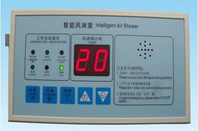 PLC系統(tǒng),控制面盤(pán)軟觸點(diǎn)控制開(kāi)關(guān),智能語(yǔ)音提示功能,LED顯示:風(fēng)淋時(shí)間,照明,內(nèi)外門(mén),內(nèi)設(shè)”急停”按鈕。緊急情況下按下按鈕,系統(tǒng)斷電雙門(mén)可同時(shí)打開(kāi)