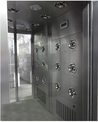 2.自動感應移門,和銀行那種自動感應移門一樣,感應后,進門自動打開,風淋完畢后出門自動關閉,實現(xiàn)潔凈區(qū)的空氣凈化,特別是食品企業(yè)防止人手接觸門造成二次污染。